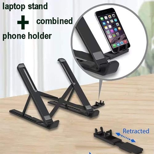 Foldable Portable Laptop Stand With Mobile Phone Stand 3 In 1 Black